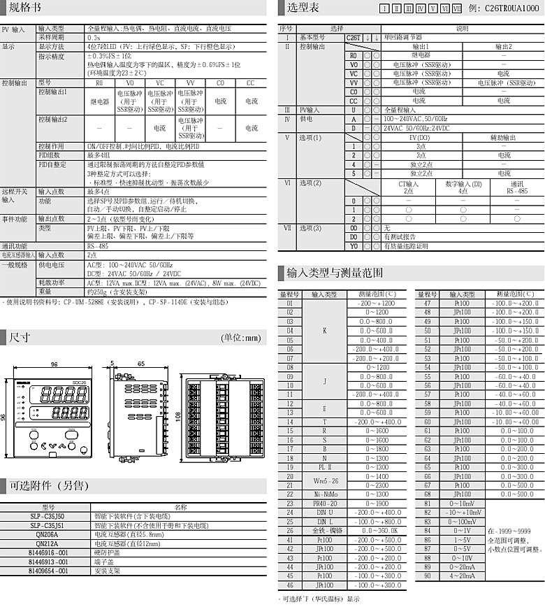 SDC26是一种具有全量程输入的数字指示调节器,其PID控制系统使用新型控制算法,即“Rationa Loop PID”(微分先行PID)和“Just-FiTTER”(快速回复设定值)。最多2路控制输出(这一数量依据不同的型号而不同)可以使用,输出种类可选择继电器输出、电压脉冲输出、电流输出。