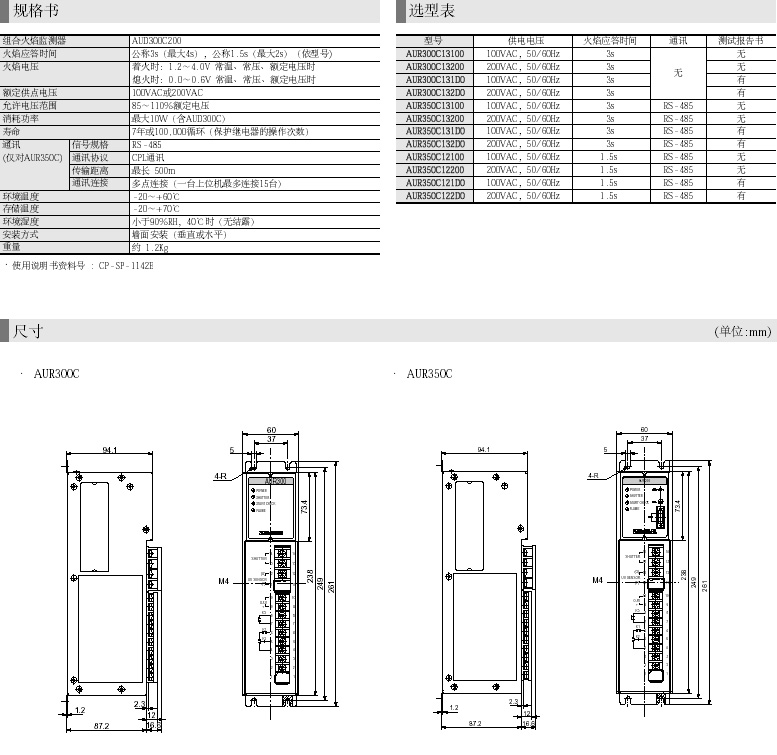 AUR300C/350C是与高级紫外线(UV)火焰监测器组合使用,具有动态自检功能的火焰烧嘴控制器。AUR350C是AUR300C的高功能版,搭载了通信功能。
