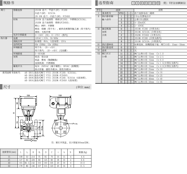 VY5100系列是法兰连接的马达驱动电动二通阀,其阀门与执行器集成在一个单元中。阀体可以用于冷/热水和蒸汽的控制。与数字调节器配合可以实现输入为4~20mA或2~10V的比例控制。
